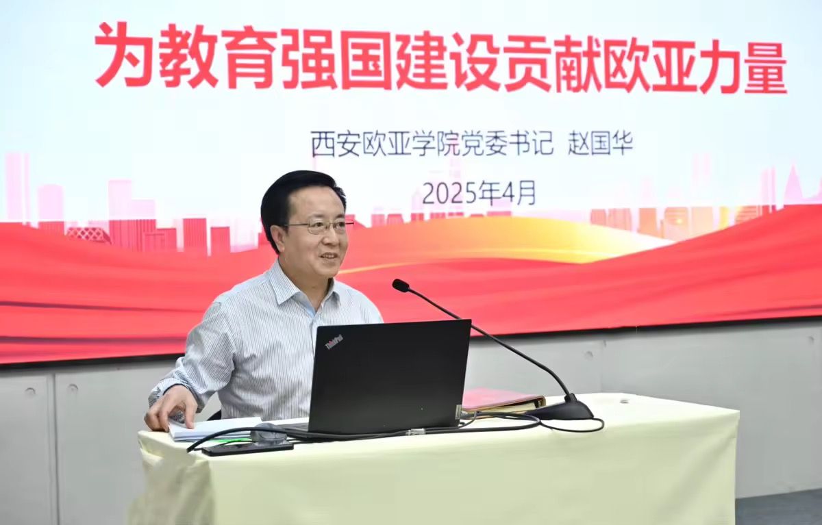 4月16日下午,党委书记赵国华在大学生活动中心向全体思政课教师、辅导员队伍宣讲全国教育大会及教育强国规划纲要精神。宣讲主题为:学习习近平总书记在全国教育大会上的讲话精神,牢记立德树人使命,用心用情做好思政工作,为教育强国建设贡献欧亚力量。宣讲围绕深刻把握习近平总书记在全国教育大会上重要讲话的重大时代背景、深刻领悟习近平总书记重要讲话的精神实质、以钉钉子精神把习近平总书记擘画的教育强国蓝图转化为教育高质量发展生动实践三个方面展开,...