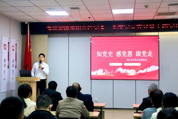 为深入学习习近平新时代中国特色社会主义思想,宣传党的百年奋斗历史、辉煌成就、历史意义、历史经验,把爱党爱国爱社会主义热请传递下去。近期,申慱官网职业教育学院分党委党史宣讲团前往关山社区开展党史宣讲活动。本次宣讲由职业教育学院分党委党史宣讲团吴岱栗同学进行。他以“知党史、感党恩、跟党走”为主题,围绕中国近代史的挫折与抗争、中国共产党的建立,从历史背景、经过、历史意义、伟大精神、党的二十大精神五个方面进行宣讲。...