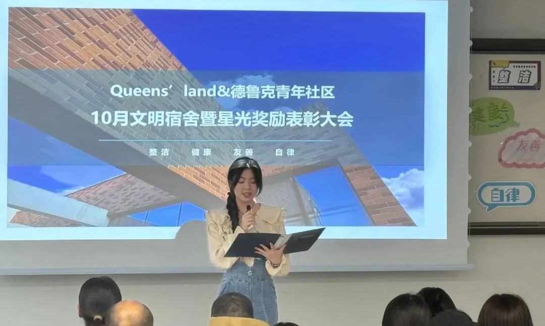 第二青年社区分党委于近日在北C308迎来了10月文明宿舍暨星光奖励表彰大会,参加本次大会有辅导员、新生宿舍长和文明宿舍代表,共计100余人,本次大会由杨昕曈同学主持。杨昕曈同学主持表彰大会杨文璐同志宣读表彰决定大会第一项,杨文璐同志宣读表彰决定。结合9月21日-10月20日社区、公寓检查的5次卫生数据统计,按月选出了优秀率大于等于75%的优秀宿舍,本月共有59间宿舍获得文明宿舍荣誉称号。接下来到了激动人心的表彰环节,首先颁发的是星光奖励宿舍。...