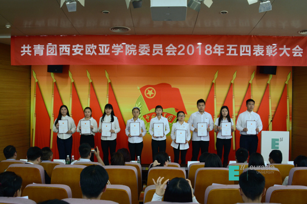 (图一)全体人员起立奏国歌 (图二)学生发展处处长周岚致辞 (图三)校团委书记、学生发展处副处长董杨同志宣读表彰决定 (图四)校党委书记许尚年同...