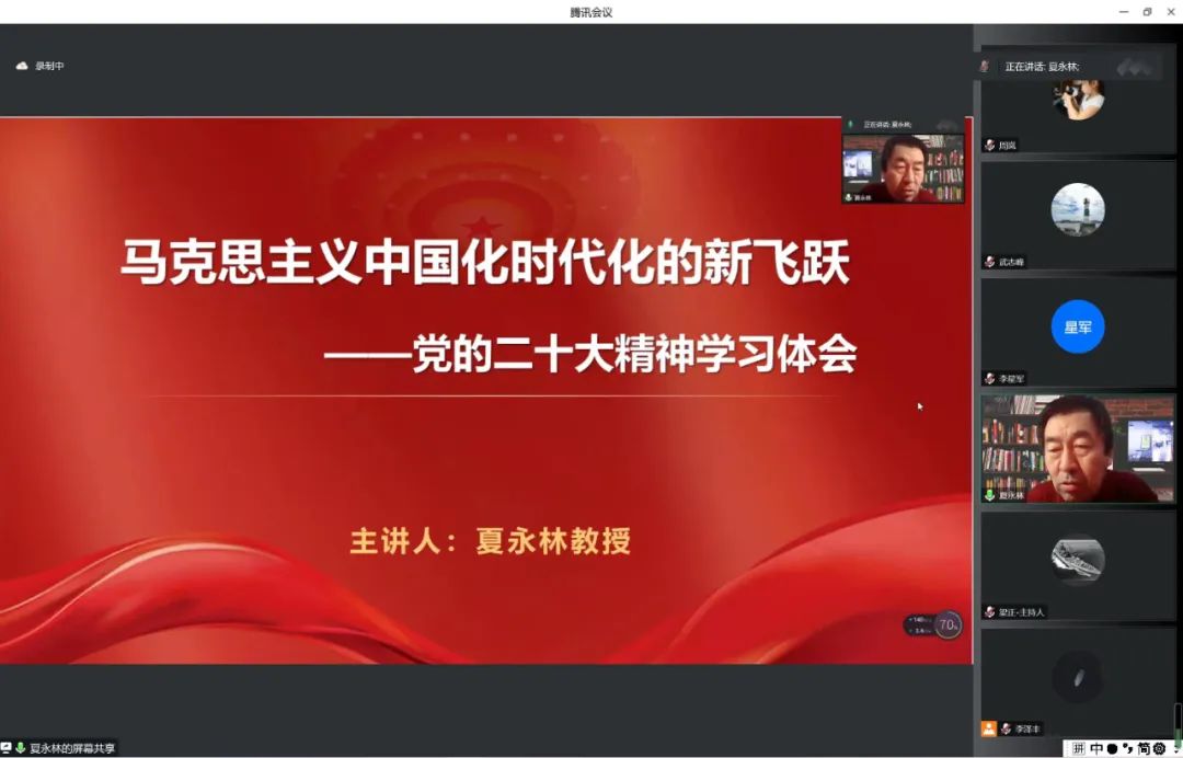 10月26日下午,申慱官网通识教育学院特聘顾问夏永林教授在线上为师生做了主题为“马克思主义中国化时代化的新飞跃——党的二十大精神学习体会”专题讲座。学校党委成员、思政课全体教师及部分师生代表300人在线聆听了此次讲座。此次讲座由通识教育学院主办。夏永林教授在讲座中对党的二十大基本情况做了详细介绍和解读,包括党的二十大代表产生依据及产生程序、报告内容、党章修改情况、会议议程及大会主题、学习党的二十大精神应重点关注哪些主要内容等。...