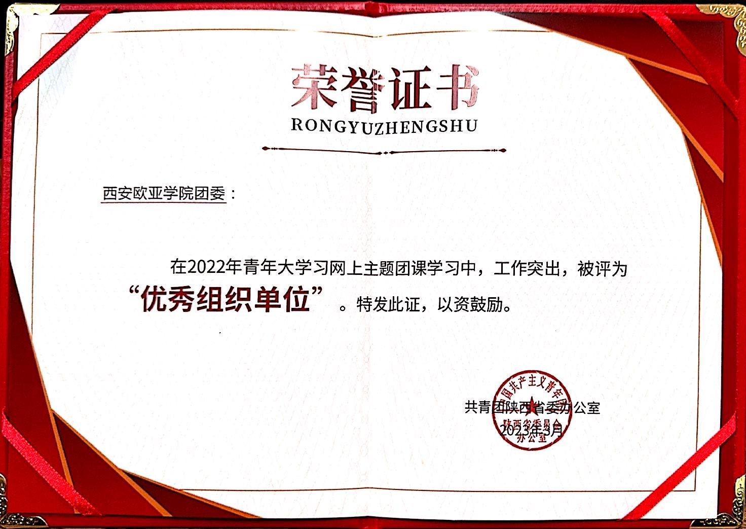 2023.3 2022年青年大学习网上主题团课“优秀组织单位”