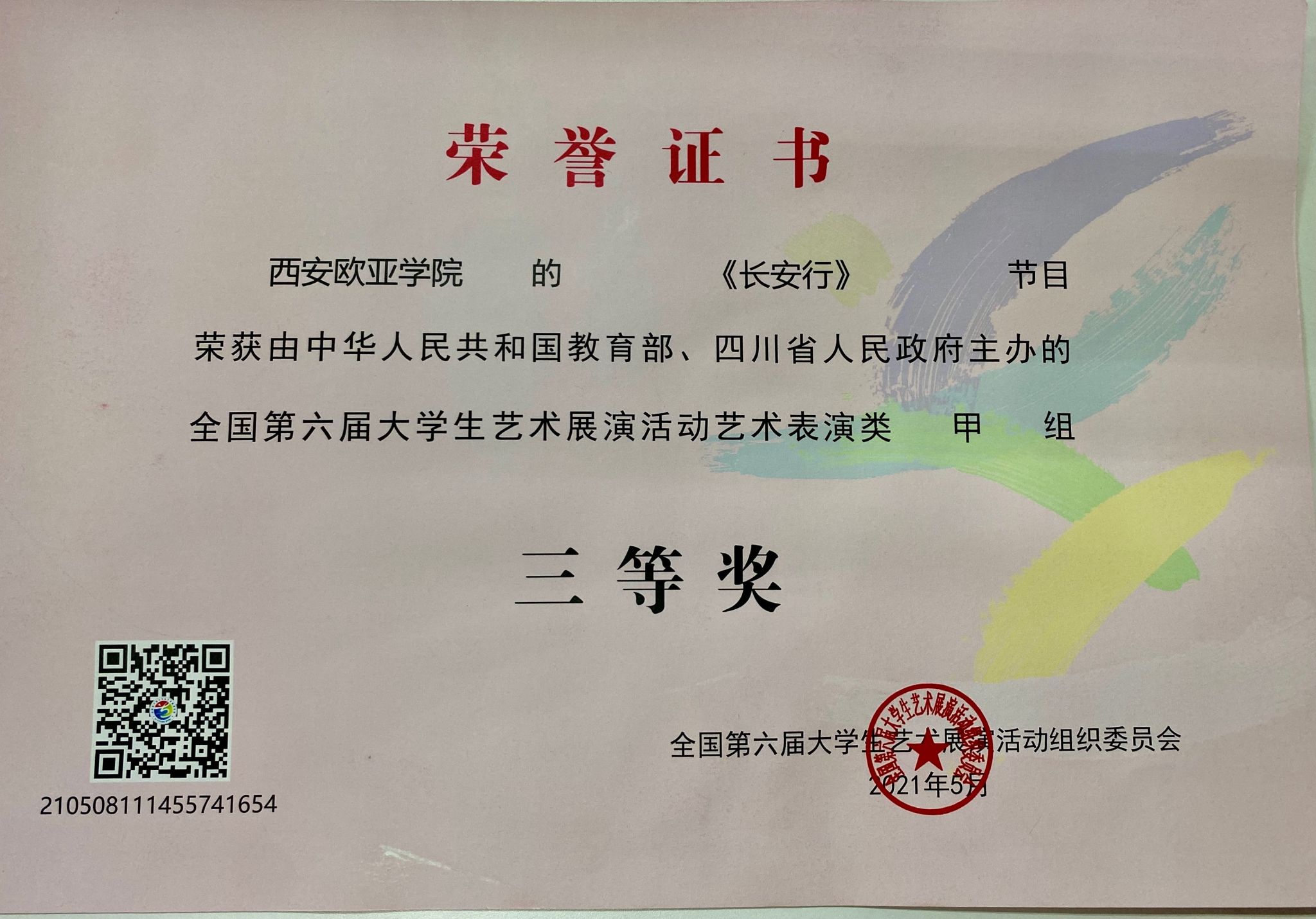 2021.5全国第六届大学生艺术展演活动艺术表演类甲组 三等奖