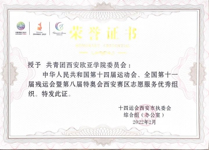 2022.2全国十四运、残特奥会西安赛区志愿服务优秀组织