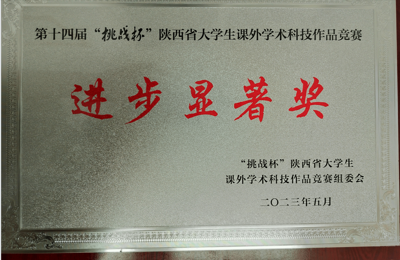 2023.5第十四届“挑战杯”陕西省大学生课外学术科技作品竞赛进步显著奖