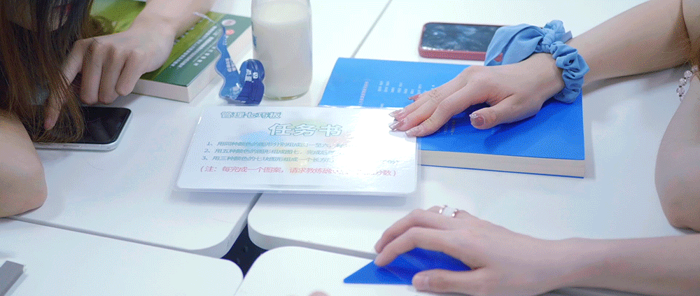 A:我有一节课就是模拟企业管理,学生分成了七个组,一个组是领导小组,另外六个组扮演了这个组织当中的不同部门,每个小组会有任务书、会有图样,一共有七个图,每个图拼出来的分值是不一样的。他们需要用这些不同的板子来拼出来图,那么问题正是他现在手上所有的板子都没有办法把这几张图拼完。例如你需要一个蓝色的板子,只有别的组才有,那么就需要通过“领导”去跟其他拥有去协调和沟通,这样才能完成拼图的任务。