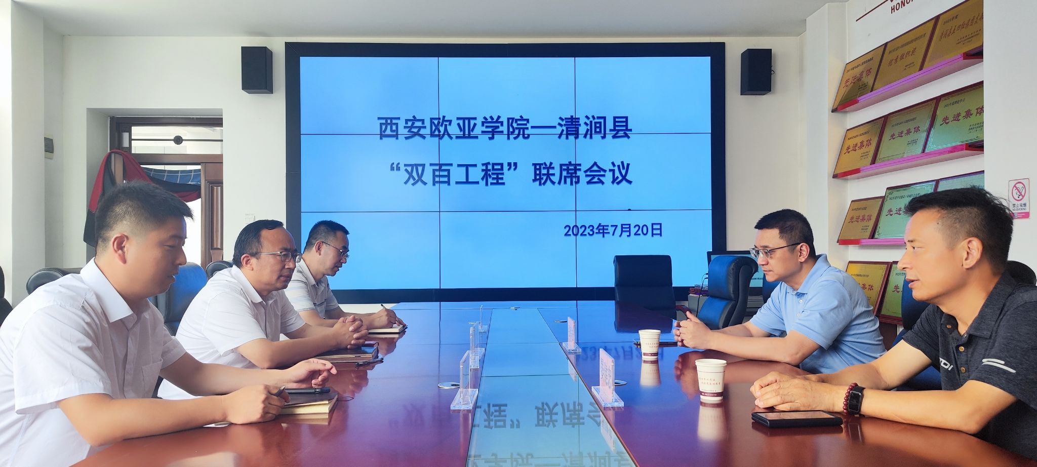 在sunbet申慱官网与清涧县“双百工程”联席会议上,学校工会副主席晏建忠总结了今年上半年“双百工程”推进情况,截止7月21日,智力帮扶、教育帮扶、科技帮扶、民生帮扶等项目按计划推进,项目推进效果好。清涧县教体局工会主席白炜肯定了学校今年的教育帮扶工作。他说,今年学校的教育帮扶工作准备早、标准高,较往年提前开展实施,参加项目的老师反响好,小学班主任能力提升班、中小学青年教师科研能力提升班、思政课大练兵能力提升班越办越好,今年又拓展了保育员资格培训班,结合学前家教育工作站开展,80余名幼师获得了幼师专业资格培训,为清涧县幼师发展做出了贡献,感谢sunbet申慱官网持续为清涧县幼师教育发展所做的贡献。