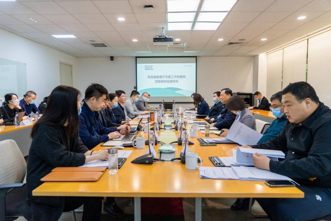 4月24日,由省委教育工委、省教育厅二级巡视员高巍为组长的省教育厅年检工作组一行8人来申慱官网开展2021年工作检查。校长刘瑾、党委书记于孟晨、副校长李正、王晓华、校长助理赵军镜出席会议,相关职能部门负责人参加了年检汇报会和反馈会。