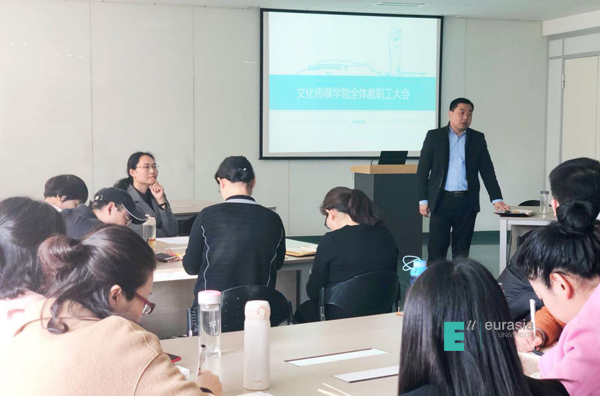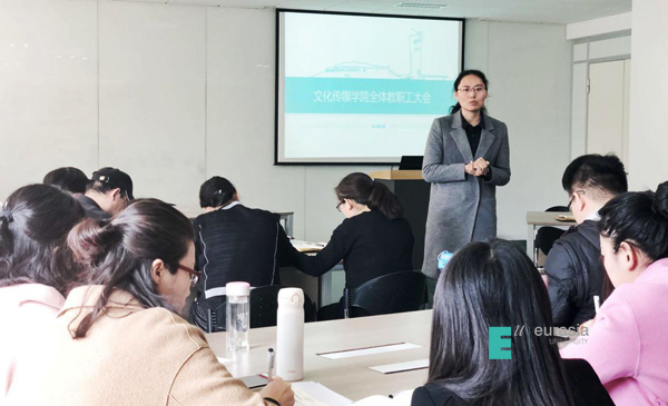 一元复始,万象更新;阳春二月,征途启航。2018年2月28日上午,申慱官网文化传媒学院全体教职工大会在A-402会议室召开,出席会议人员主要有文化传媒学院闫晋瑛副院长、院长助理高昱老师、教学发展中心主任张淑云老师、合作发展中心主任左伟老师、课程中心主任罗丽霞老师、樊荣老师以及其他全体教职工,会上各部门负责人分别就今年分院的各种重点工作事项进行了统筹安排。