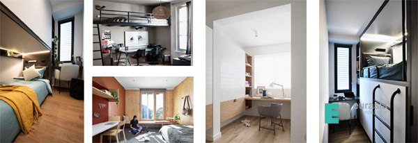从效果图看,整个建筑外墙有着雕塑感的形态设计,四个看似独立又彼此相连的灰白矩形盒子,借鉴了传统中国窗的元素,它们如积木版搭建组合为两座21层的公寓塔楼,严谨的立面网格与灵活的色彩分布,创造出独特的建筑语言。公寓内部有近800间宿舍,可容纳近3000名学生居住。