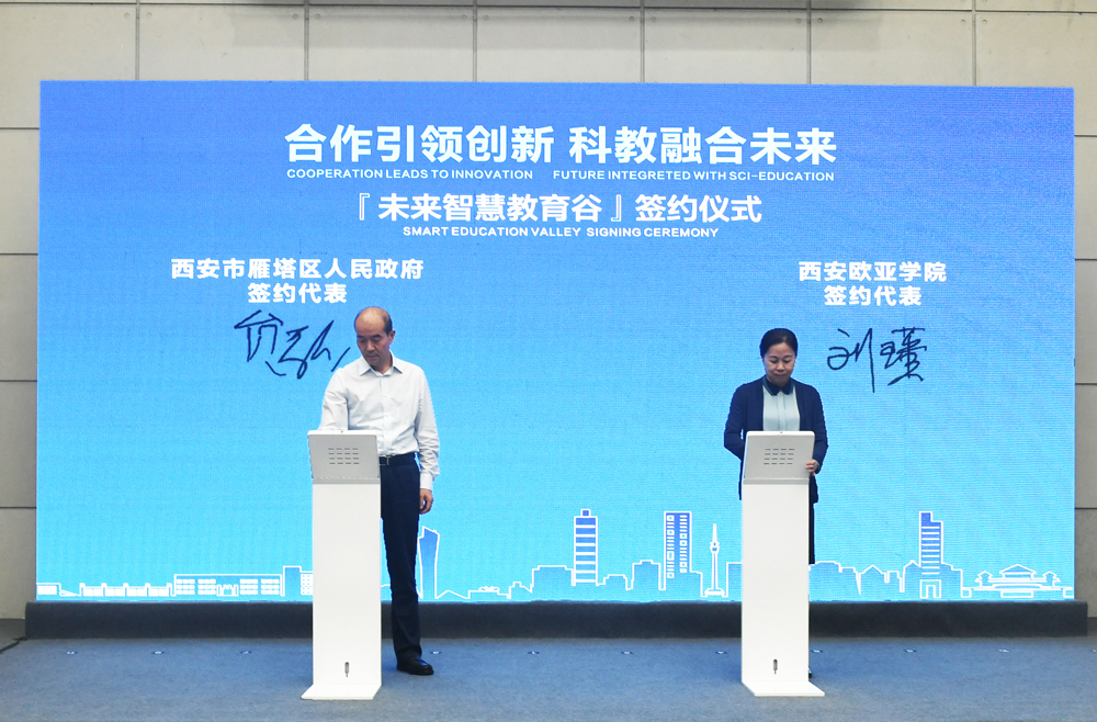 打造智慧教育产业经济圈,创建产学研深度融合示范区,9月23日上午,西安市雁塔区人民政府与申慱官网联合共建的“未来智慧教育谷”签约揭牌仪式在申慱官网举行。