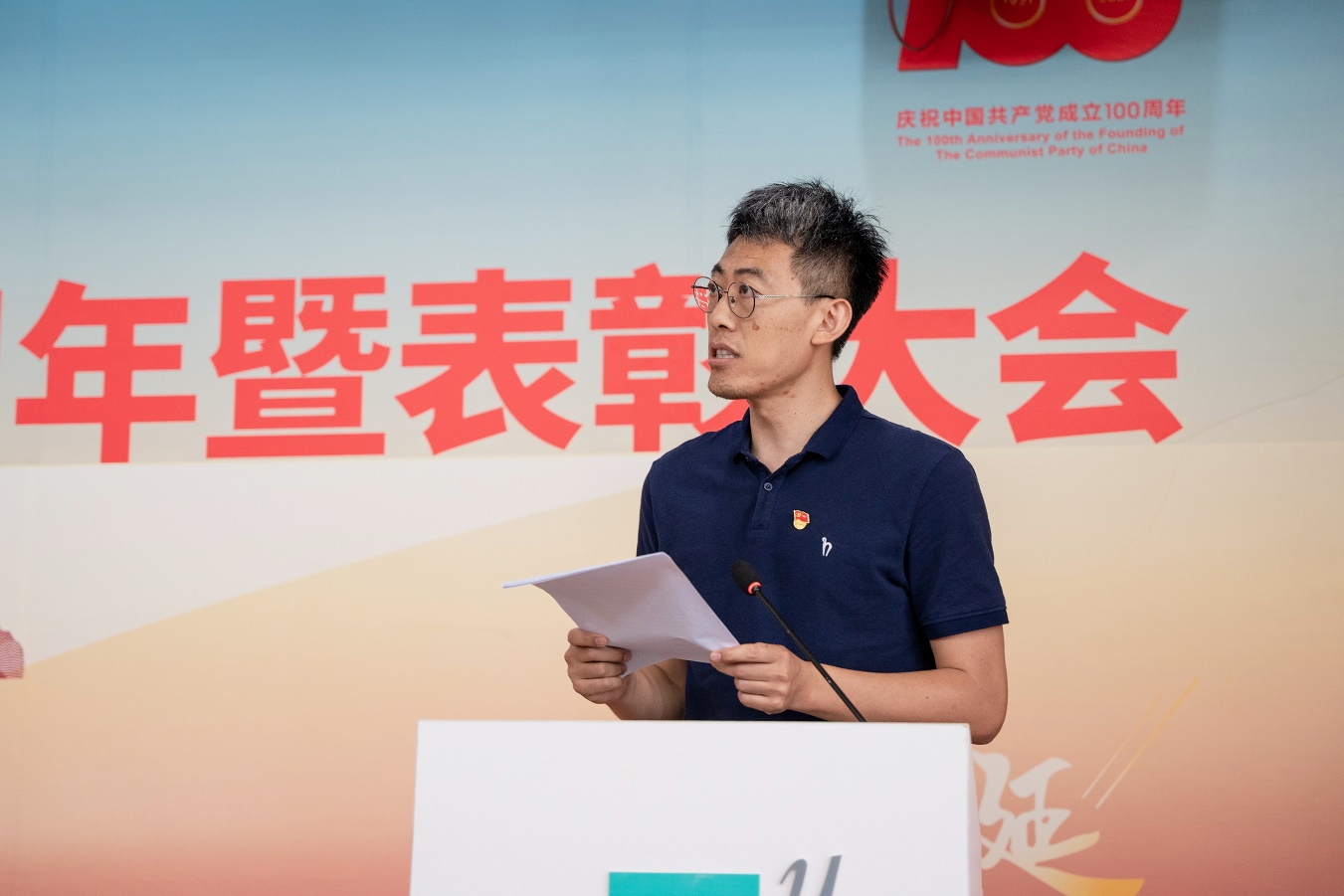 王志强同志宣读表彰决定,经学校党委研究决定,分别授予第二青年社区分党委等7个基层党组织“先进基层党组织”、郭妍等118名个人“优秀共产党员”和谢目丽等18名个人“优秀党务工作者”荣誉称号。于孟晨、刘瑾、王志强同志分别为受表彰的先进集体和优秀个人代表颁奖。校党委委员、校长助理王晓华领誓,全体党员重温入党誓词。先进基层党组织代表、通识教育学院党总支书记、院长黄鑫同志,优秀共产党员教师代表、文化传播学院第一党支部书记曹小娟同志,优秀共产党员学生代表、第一青年社区分党委张腾同志作大会交流发言,分享先进经验和典型事迹。