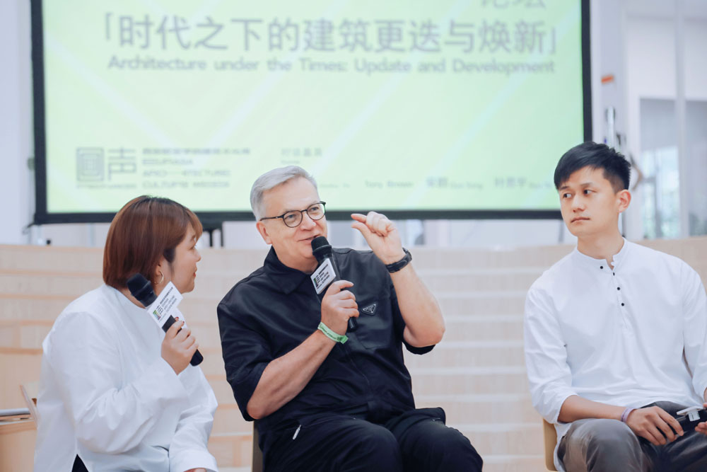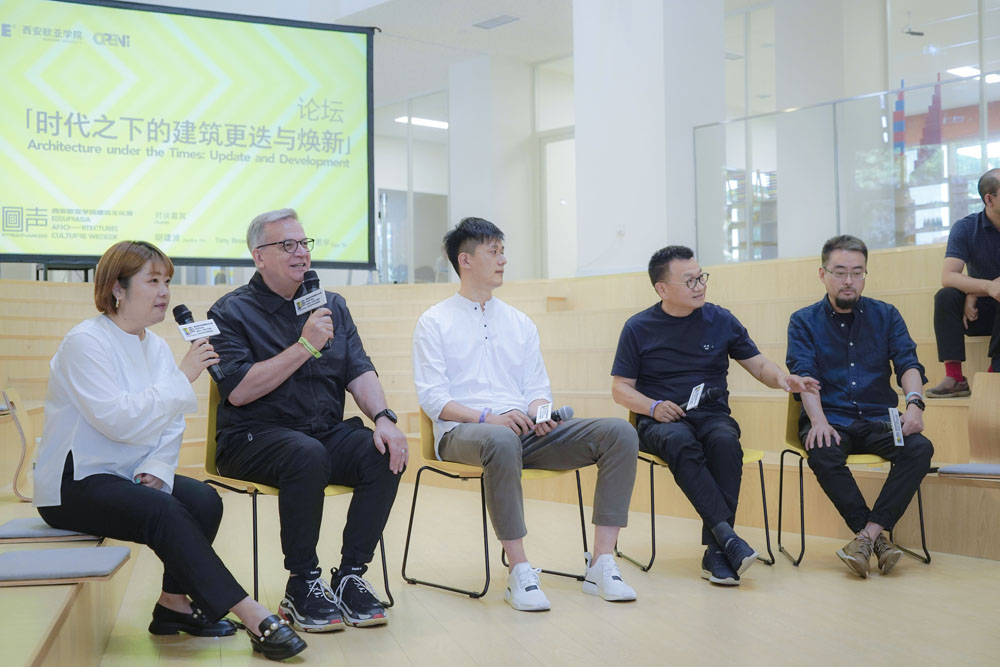 在对教育的多元化及建筑的人文化加以关注的同时,「回声」建筑文化周发起一场主题论坛,申慱官网创办人、董事长胡建波,申慱官网艾德艺术设计学院院长Tony Brown,本地「Local」创始人、西安城市记忆博物馆馆长宋群,北京场域建筑事务所合伙人、主创建筑师叶思宇四位嘉宾展开对谈,聚焦于年轻设计师的力量,探讨高等教育的校园建设理念。