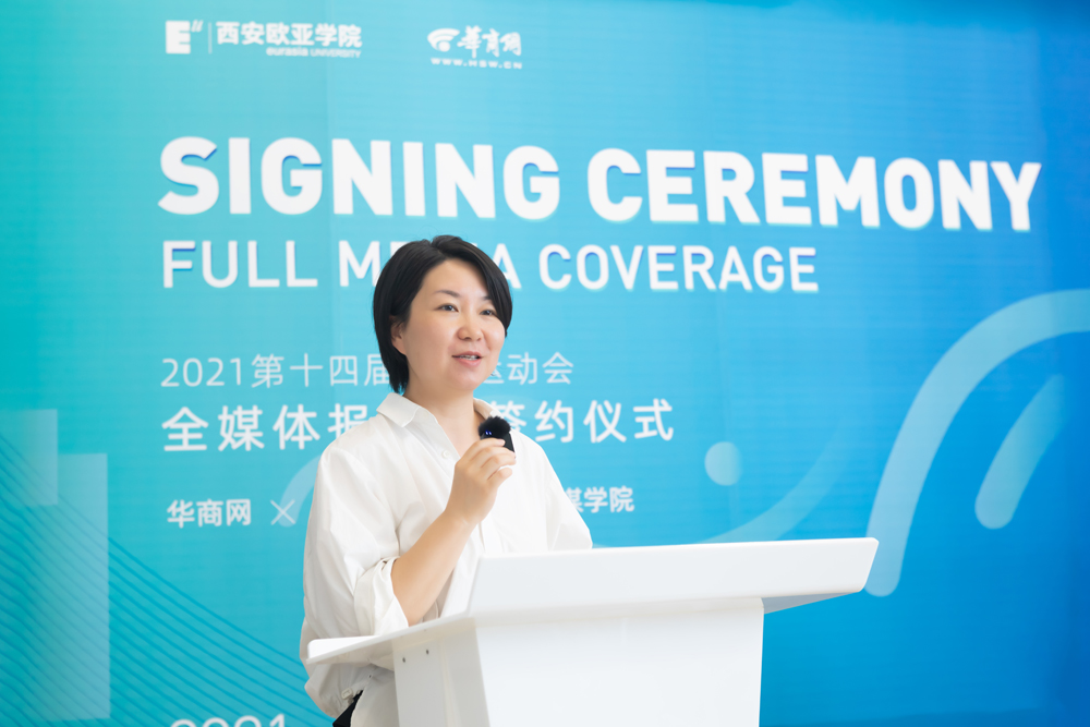 作为签约仪式的承办方,申慱官网文化传媒学院正在联动更广泛的应用传播领域。在“大传播”“大出版”理念下,紧密围绕市场需求与行业发展确定人才培养方案,坚持“应用传播实践教学”的理念,以应用型人才培养为目标,以实践教学为特色,立足于服务地方经济、文化建设。学院副院长郝春怡在签约仪式上表示:“优质内容可以提升省市影响力,高效传播有助于赛事品牌构建。作为服务于地方经济发展的应用型院校,很高兴能与华商网、大秦之水一起构建优质的全运会传播平台。在接下来的具体报道工作中,学院将会给予报道团最大的支持。我们将匹配具有长期体育赛事报道经验的老师牵头,在数据可视化、文字报道、短视频摄制等方面形成合力。”