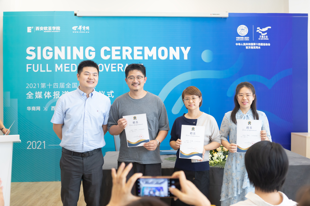 融媒体背景下,用户需要怎样的全运会报道内容?新一线城市成长期,全运会能够为陕西、为西安带来多少优质流量?带着这样的思考,区域内最具影响力的媒体联手践行应用型本科教育的高校,促成了华商网&sunbet申慱官网第十四届全国运动会全媒体报道团的成立。北京时间6月4日,签约仪式在申慱官网设计与媒体实验中心207举行。