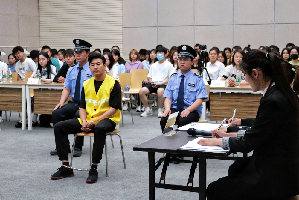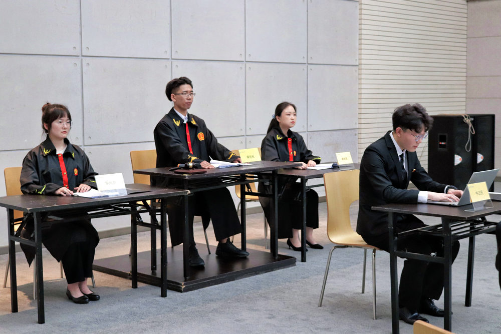 在模拟法庭上,同学们分别扮演了审判长、审判员、书记员、公讼人、辩护人、被告人等各类角色,整个庭审过程气氛严肃,使学生在实践中学法、知法、懂法进而成为守法用法的公民。