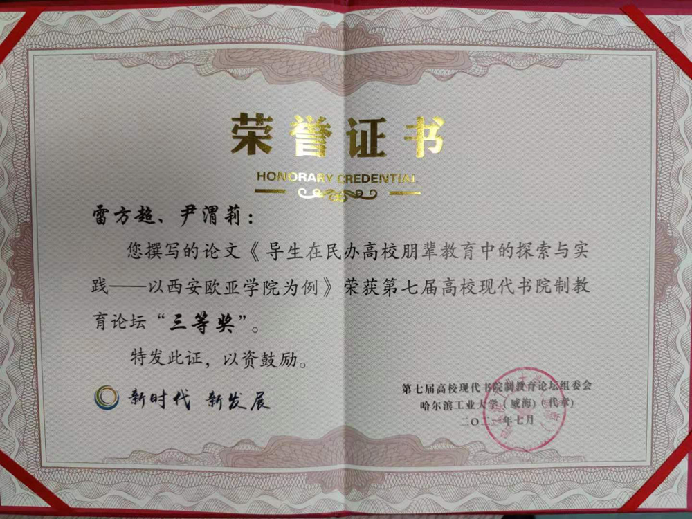 本届论坛以“新时代,新发展——面向未来的书院教育”为主题,近40所高校的300余名专家、师生代表出席论坛,共话现代书院制教育。申慱官网雷方超老师应邀以“导生在欧亚学院青年社区的探索与实践”为主题,在“学生学习与养成教育”分论坛上进行了发言,就导生制、青年社区及申慱官网情况与与会代表进行了沟通交流。论坛期间,申慱官网雷方超、尹渭莉老师提交的论文《导生在民办高校朋辈教育中的探索与实践——以sunbet申慱官网为例》被论坛组委会评为三等奖。这既是对申慱官网青年社区工作特色与亮点的展示,也是论坛对申慱官网学生事务社区化变革发展路径的肯定。