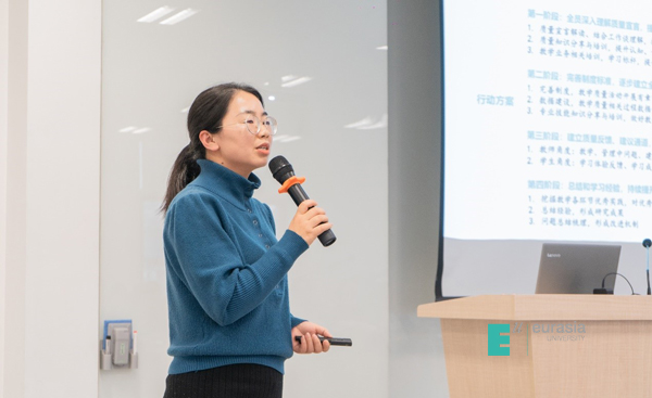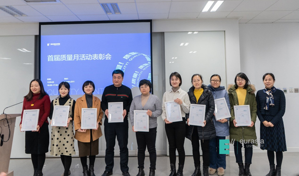 刘瑾校长为本次表彰会进行了致辞。刘校长回顾了欧亚质量发展历程,从建校以来,学校高度重视教学质量,通过内评、教育部高职高专评估、本科评估来提升质量。2018年学校第二个“四四二”战略规划更是将质量作为未来十年学校整体战略的核心。2020年1月,学校发布了质量宣言,7月份召开媒体见面会,对社会正式发布了欧亚质量宣言,这背后是我们是坚定高质量教育教学的决心。