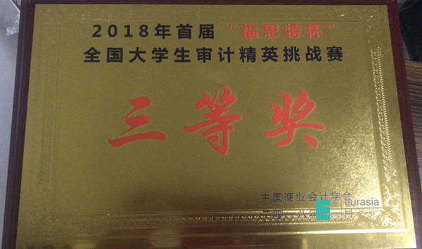 11月9日,申慱官网会计学院叶忠巧、闫宇峰、王迪3名同学代表申慱官网参加2018年首届“福斯特杯”全国大学生审计精英挑战赛,本次大赛规模高、影响大,吸引了来自全国60多所知名高校。我院学子以总分148的成绩斩获大赛三等奖。同时获得三等奖的学校有中南财经政法大学、山西财经大学、浙江财经大学、江南大学等。本次竞赛由中国商业会计学会主办,中国高等教育学会高等财经教育分会为指导单位,南京审计大学为承办单位,广州市福斯特科技有限公司为技术支持单位。