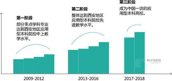 2005年,欧亚晋升为普通本科高校。以此为标志,欧亚完成了前十年的创业积累、校园基本建设和规范稳定发展,开始进入到一个新的发展阶段。