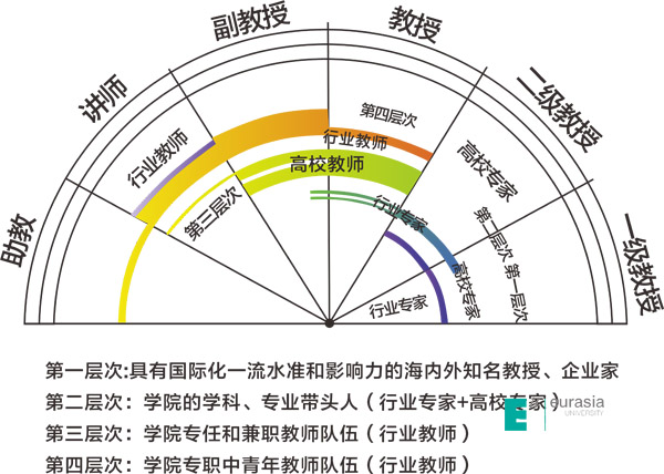为此,sunbet申慱官网在2012年建构出彩虹图师资发展规划(图2),由专任教师、兼职教师、学科带头人和海外名师四个层次构成,作为二级学院教师队伍重构和重建的重要指引。