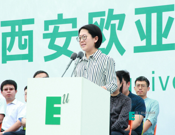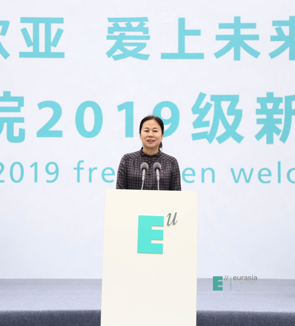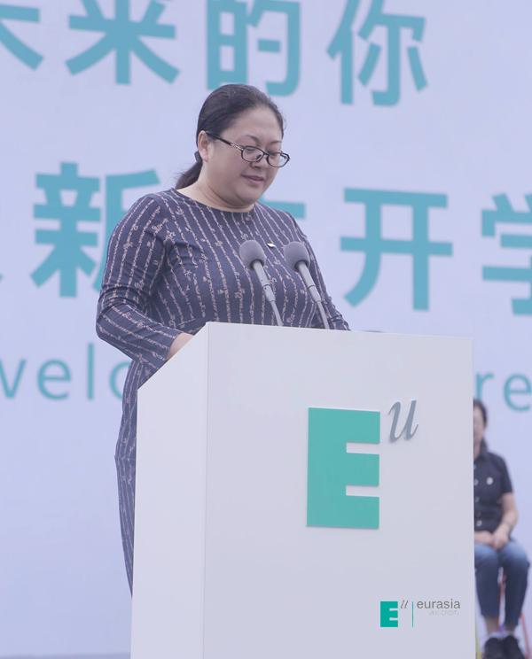 接下来,申慱官网校长刘瑾教授致欢迎词。她说:“欧亚所做的一切,是为了满足师生们的多元化需求,让大家感到方便、自在和舒心。但更重要的是,我们希望通过这些努力,让师生们感受到一种对美和品质的追求。我们相信,高质量的生活体验是卓越教育的一部分。好的审美情趣和生活习惯,从容淡定的气质与优雅自信的谈吐,来自于对美和品质的感知和体验。在欧亚,我们崇尚“教育即生活”,要把美和高品质的生活体验带给大家,而这些新体验将影响你们的一生。学校最新落成的国际语言学习中心,为学生提供完备的全球化、多品类英语教育项目和课程,能够满足同学们多层次的学习需求。国际商学院独特的课程内容、录取模式和奖学金配置,使国际化教育不再遥不可及。只要你足够优秀,欧亚会及时为你们搭建通往世界的桥梁。欧亚地处西安,却心怀世界。国际化战略的持续落地,将会让国际教育交流合作的成果真正惠及所有师生,培养重品格、会思考,善沟通,具有国际视野、创新精神和较强实践能力的世界公民。希望同学们在欧亚学会合作、懂得奉献、重视体验、关注成长,同时要学会对人关爱、做事讲究。我衷心祝愿,欧亚能让你们的青春年华绽放出灿烂的光辉,欧亚的教育能够成就每一位同学的人生梦想。”
