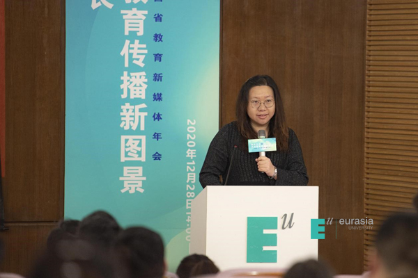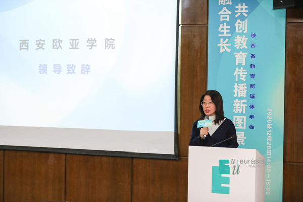 张乐芳助理在欢迎致辞中指出:受疫情影响,陕西省教育新媒体研究院改变原有线下培训模式,在腾讯企鹅学院“双百云课”上线了四门新媒体课程,希望能助力疫情期间运维人员的新媒体能力提升;也在疫情许可条件下,送培训上门,尽可能帮大家解决实际运营问题;同时,在数据可视化分析、数据专项报告研发方面进行了很多探索,这些探索,也为欧亚学院的应用型人才培养提供了有利土壤。