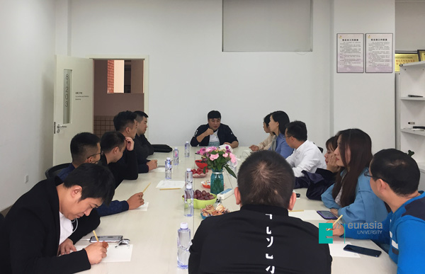 (图九)胡建波董事长与校友们分享欧亚故事