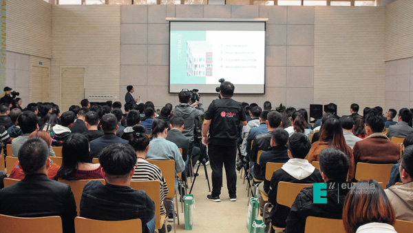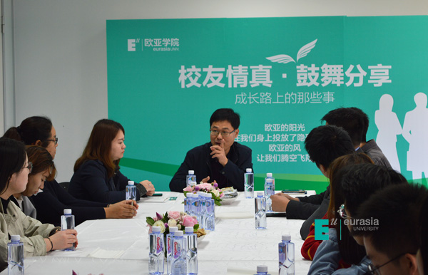 沙龙尾声,校友们迎来了最为期待的胡建波董事长。胡建波欢迎同学们回到“快乐老家”,并与大家分享了《价值观办学》的主题报告。报告中,胡建波展示了欧亚“四四二”十年战略的执行情况,校园软硬件环境建设走在西安高校前列、高考录取分数线连续四年位居同类院校第一、连续五年蝉联中国校友会网财经类民办大学榜首、……母校近年取得的诸多成绩令在场校友倍感自豪。