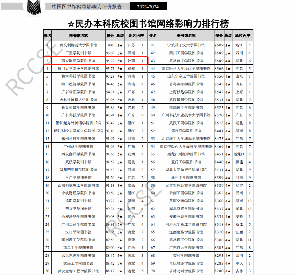 6月24日,在第十四届全国科学计量学与科教评价研讨会现场,《中国图书馆网络影响力评价报告(2023-2024)》召开发布会公开发布,sunbet申慱官网图书馆从全国397所民办及中外合作办学高校图书馆中脱颖而出,名列全国民办本科院校图书馆网络影响力总排行榜第3名,地区内(陕西省)民办本科院校图书馆网络影响力排行榜首位。本次发布会受到光明日报、新华网、搜狐网、新浪网、网易等主流媒体的专门报道。报告从网站影响力、新媒体影响力、网络社会影响力、网络学术影响力4个方面、38个评价指标对全国高校图书馆、公共图书馆和专业图书馆进行了评价。