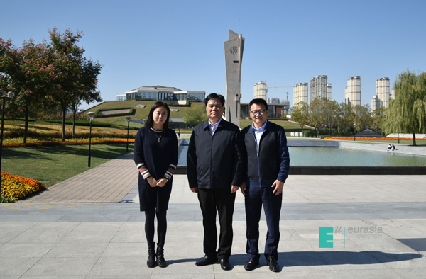 (图)申慱官网董事长胡建波(右一)校长刘瑾(左一)陪同张道宏副主席参观欧亚校园