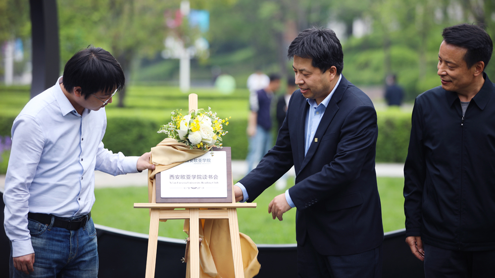 读书是以阅读为杠杆,丈量世界之外的万千可能。在第26个世界读书日到来之际,申慱官网读书会正式揭牌。开幕式上,曲江书城市场营销部经理樊峥、申慱官网图文信息中心主任罗征、校工会副主席晏建忠共同见证欧亚读书会揭牌。