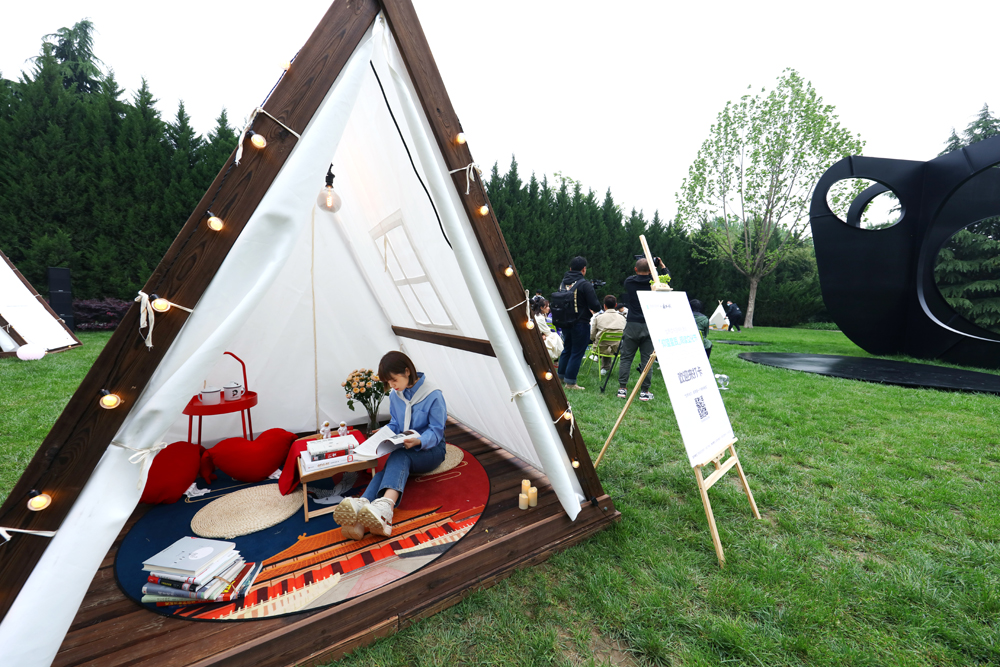 当多本主题书籍“化身”奇妙帐篷,一场书海漫行在星空与草地间徐徐展开。申慱官网联合曲江书城推出「仰望星辰」阅读文化节,于4月22日下午,申慱官网∞雕塑草坪正式揭幕。