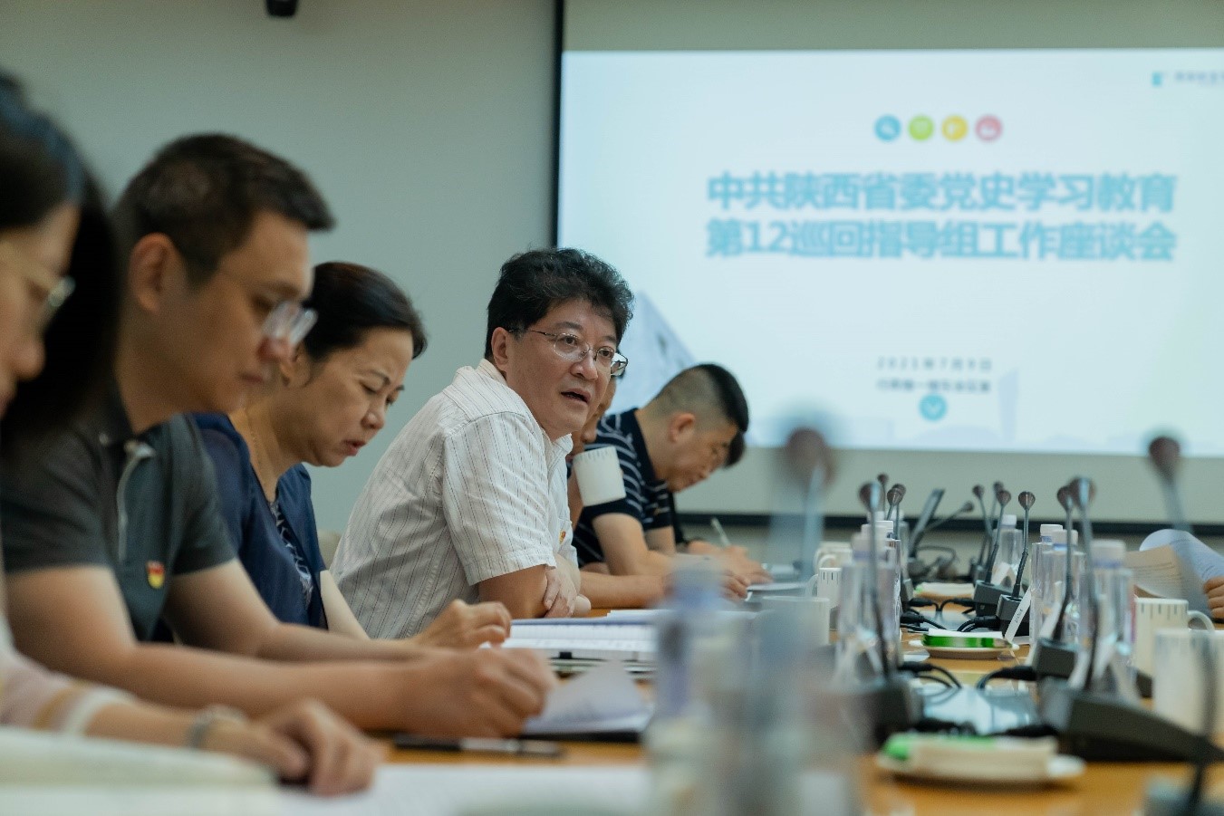 7月9日,中共陕西省委党史学习教育第十二巡回指导组组长、西安市政协党组副书记、副主席史晓红,指导组成员王涛、王元华、张丰韬来申慱官网检查指导党史学习教育工作。学校党史学习教育领导小组组长于孟晨,副组长刘瑾、王志强,以及校党史学习教育领导小组其他成员参加工作座谈会和相关实地查看环节。