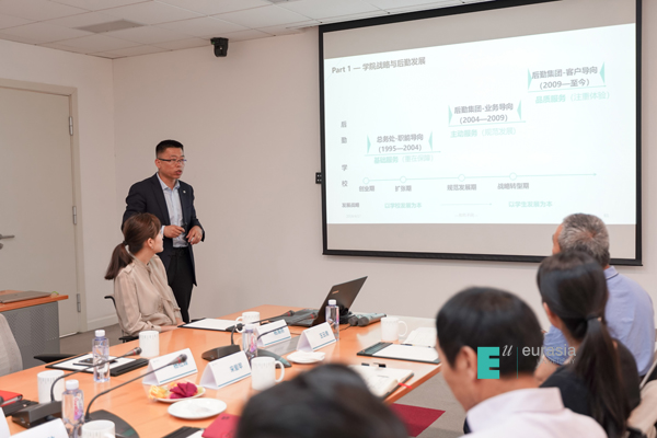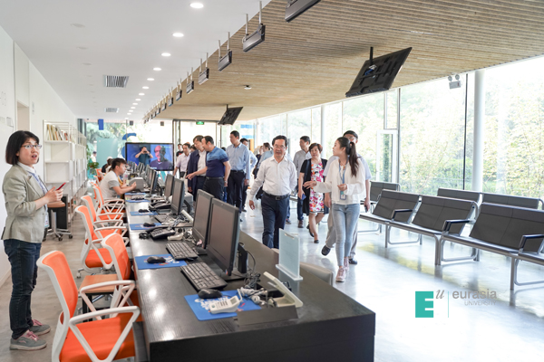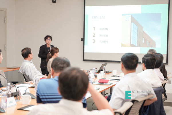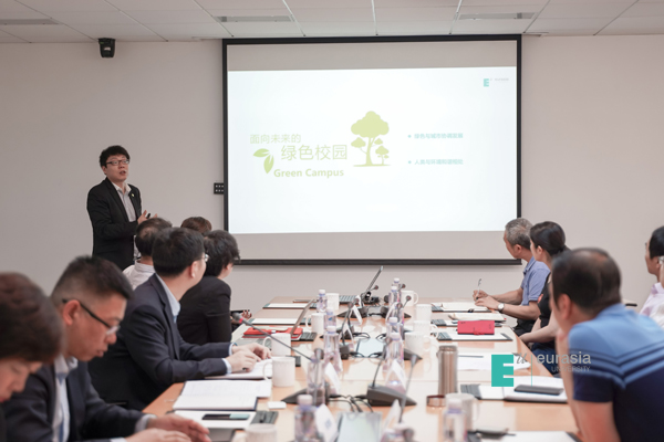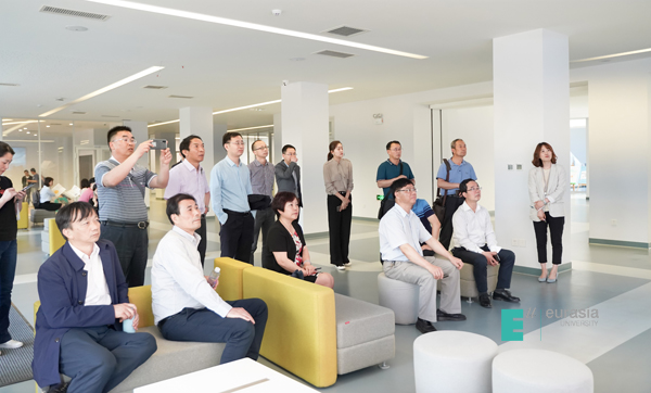 随后,考察团一行人先后参观了学院行政楼、艺术学院、工坊、北客厅、人居环境学院,听取了分院关于绿色建筑人才培养的介绍,欧亚学院关注绿色校园的建设,更关注学生和教师的体验,并以西区a座教育空间建设为例对健康建筑作了讲解。