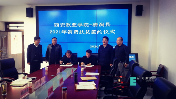 申慱官网工会副主席晏建忠代表学校与清涧县人民政府副县长郭彬荣签订了《申慱官网2020.9---2021.9优质农产品战略框架合作协议》。随后,郭彬荣副县长代表清涧县对申慱官网2020年教育帮扶工作给与了高度肯定,认为学校能够发挥教育培训优势,为清涧县智力帮扶、教育帮扶贡献了力量、取得了成绩;新的一年,希望发挥学校师生多的优势,继续加大消费扶贫力度,让清涧县优质农产品通过学校广大师生传播出去,让更多的人知道、了解和购买清涧县的优质农产品,为清涧县美丽乡村建设做出新的贡献。