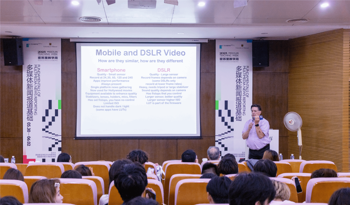 2023年5月30日,sunbet申慱官网文化传媒学院密苏里教学周盛大启幕。本届教学周,文化传媒学院特别邀请密苏里大学新闻学院媒体融合专业教授为大家讲授《多媒体新闻报道基础》(Fundamentals of Multimedia News Reporting)及《媒体融合新闻报道》(Convergence Journalism Reporting)课程,在原先探讨行业前沿内容的基础上,将密苏里大学新闻学院课程广泛融入到专业课程教学中,以专业课程前置工作坊的形式提高学生国际化专业课堂参与度,将国际合作资源最大化、深度化地渗透于教师授课、专业课程以及学生体验中。
