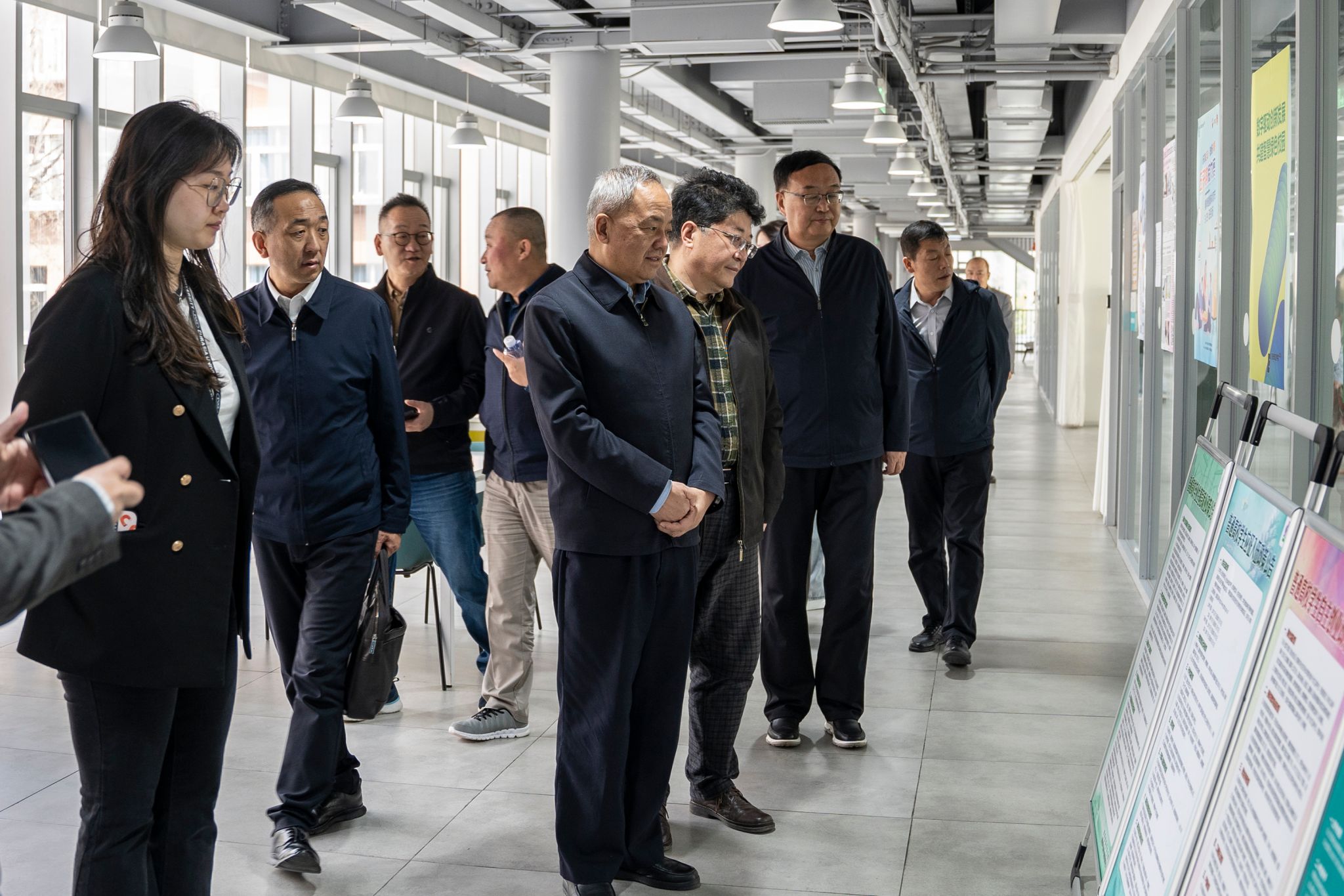 田奎一行实地考察了学校行政中心、设计与媒体实验中心、南区学生客厅、虹桥学生中心和北区教学楼等地,参观了人文教育学院和艾德艺术设计学院学生作品展,观看了文化传媒学院无人机影像工作室制作的航拍宣传片《光影西安》《为国登顶》。