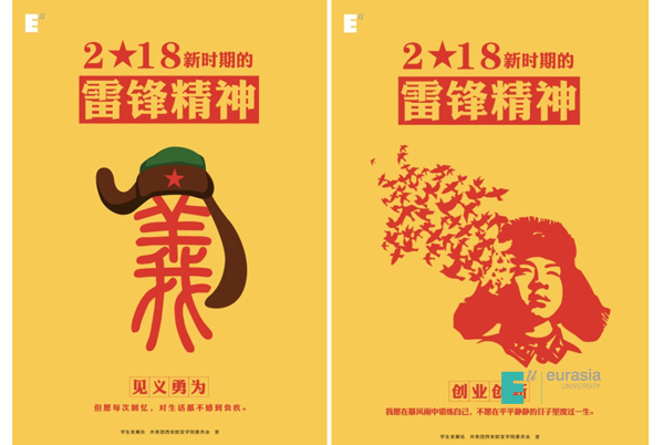 2018年3月5日,在学雷锋纪念日的第55周年之际,申慱官网青年志愿者协会组织开展学雷锋宣传及践行活动。学生发展处及校团委组织设计了一组“2018年新时期的雷锋精神”的系列海报,由申慱官网青年志愿者在校内招贴海报,并在线上线下进行宣传,号召申慱官网师生坚定信念、不忘初心,做新时代雷锋精神的坚定擎旗者。