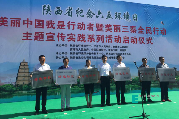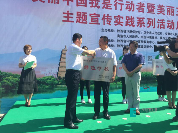 6月5日上午,在西安市南门迎宾广场举行了纪念六五环境日“美丽中国我是行动者暨美丽三秦全民行动”主题宣传实践系列活动启动仪式,活动由陕西省环保厅、汉中市人民政府、安康市人民政府、商洛市人民政府、中国环境报、陕西卫视、西部网主办,陕西省环境保护宣传教育中心、陕西省环保志愿者联合会承办,邀请省政府领导出席。活动进行绿色文明示范工程表彰。陈国强副省长为申慱官网颁发了“绿色学校”荣誉。