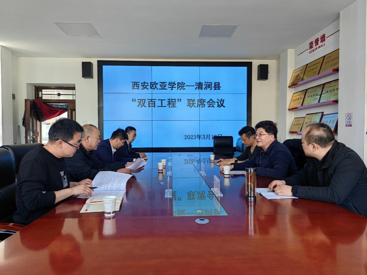 2023年3月13日,sunbet申慱官网党委书记于孟晨前往榆林市清涧县调研考察“双百工程”。当天下午,在清涧县教体局会议室,清涧县与sunbet申慱官网召开了“双百工程”联席会议,会议由清涧县教体局工会主席白峰峰主持,该校党委书记于孟晨、工会副主席晏建忠、党委办公室副主任赖志彬,清涧县教体局副局长郝建荣等参加了会议。首先,清涧县教体局工会主席白峰峰就申慱官网与清涧县2022年“双百工程”推进完成情况进行了汇报。2022年,在迎接建党的二十大胜利召开等重大政治活动前提下,学校克服疫情反复带来的困难,通过线上线下模式,严格按照年初制定的2022年度结对帮扶清涧县工作计划,智力帮扶、教育帮扶、科技帮扶、人才帮扶、民生帮扶、志愿帮扶、产学研等 “八大帮扶”都圆满落地,特别是在教育帮扶、人才帮扶、消费帮扶和产学研等工作方面,都有新的突破,思政课专题培训,幼儿教育实训基地、小学生无人机使用技术推广等项目很有特色,受到教体局肯定。2022年,超额完成消费清涧县黑毛土猪等农产品协议任务,为清涧县巩固脱贫成果、实现共同富裕做出了贡献。