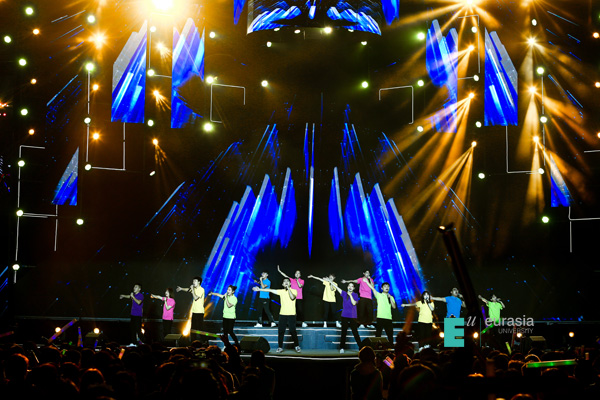 今夜的欧亚,热情如潮水般涌动;今夜的欧亚,已沉醉在欢乐的海洋;一声声祝福,拥抱着来自天南地北的朋友;一张张笑脸,像花朵一样激情绽放。尖叫声、欢呼声、音乐声汇聚成一首美妙的交响曲,今夜,属于欧亚。