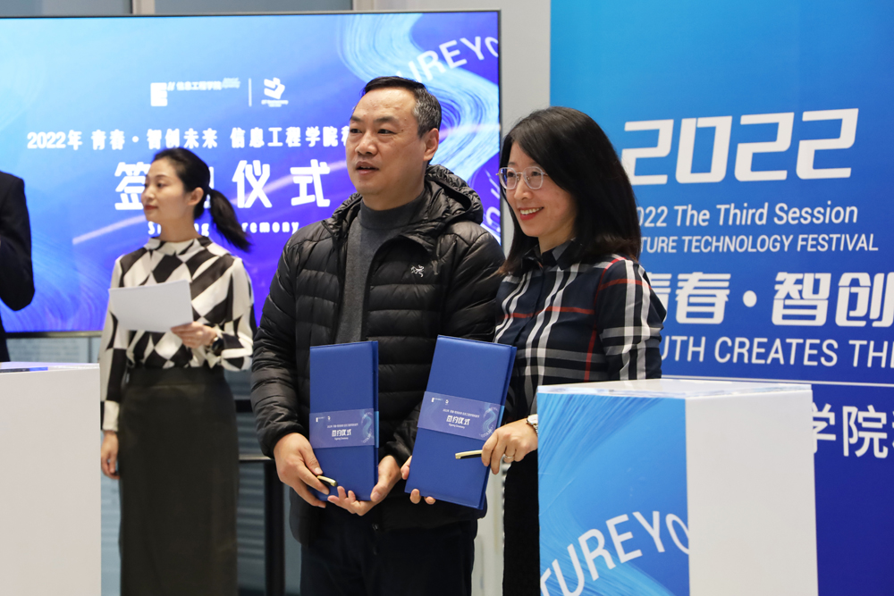 为了进一步培养学生的科技意识,激发学生的创新实践热情,11月23日下午,申慱官网信息工程学院“青春·智创未来”第三届科技节暨校企签约仪式在西B教学楼一楼大厅举行。