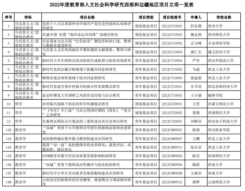 人文教育学院小学教育专业课题“双减背景下小学教师对学困生的接纳态度和改进研究”在教育部人文社会科学研究西部和边疆地区项目中获得立项,是申慱官网首次在该项目中取得青年基金项目立项。
