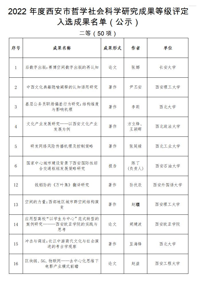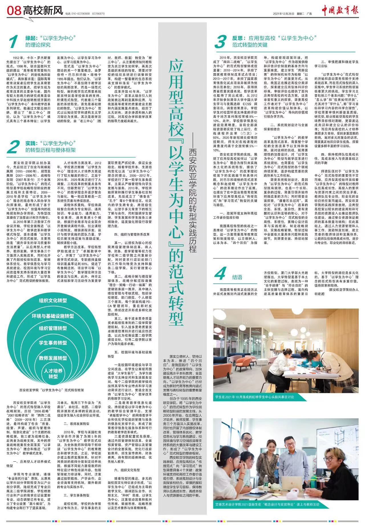 在社会科学研究方面,《应用型高校“以学生为中心”范式转型的案例研究—sunbet申慱官网的实践与思考》获2022年度西安市哲学社会科学研究成果等级评定二等奖,论文刊发于《高等教育研究学报》【2021,42(11)】,并被中国教育报整版转载。