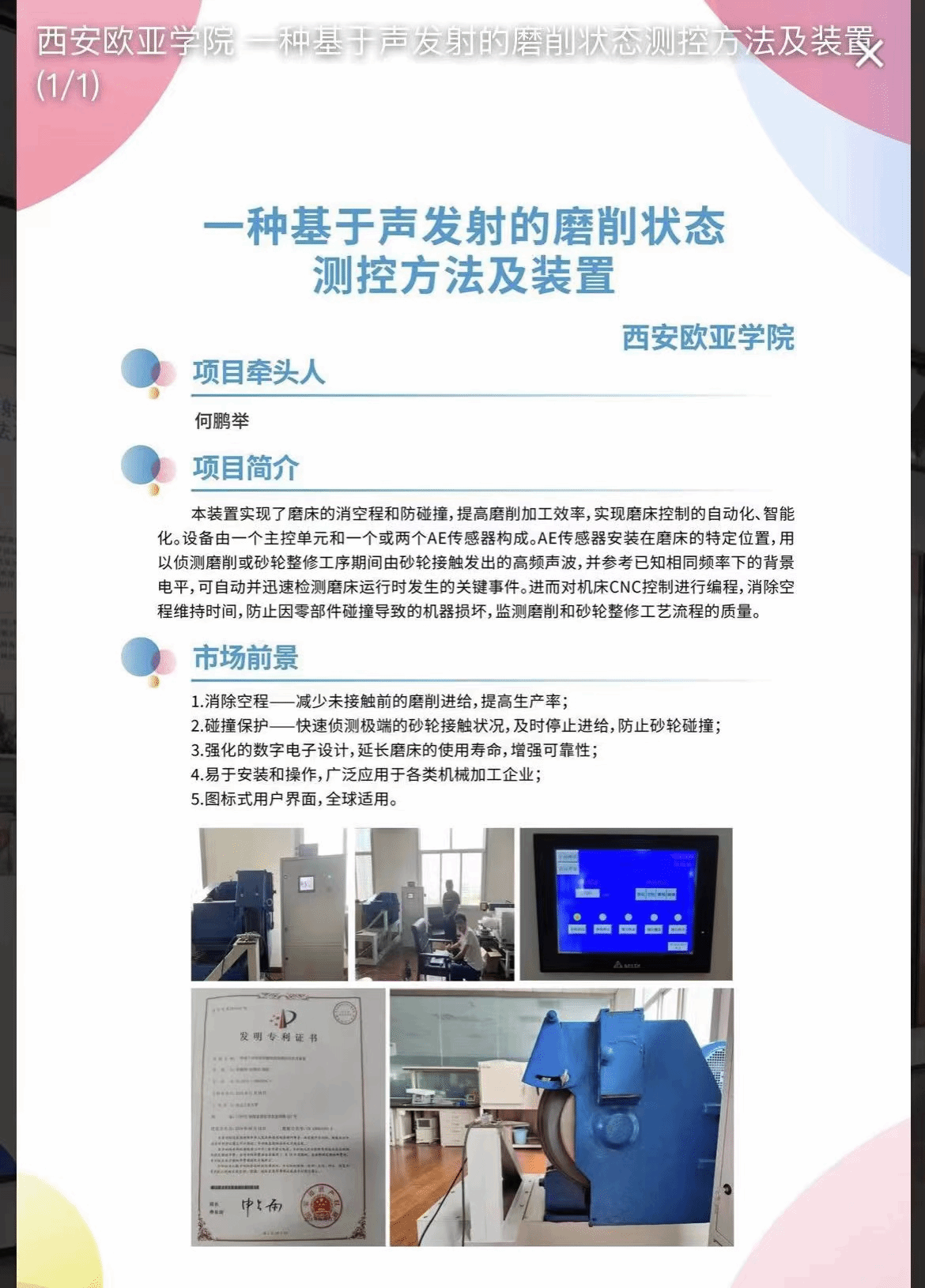 sunbet申慱官网信息工程学院研究团队的研究成果——“一种基于声发射的磨削状态测控方法及装置”被选为高校最具转化潜力成果,本装置实现了磨床的消空程和防碰撞,提高磨削加工效率,实现了磨床控制的自动化、智能化,于2022年12月成功亮相秦创原·第六届陕西省高校科技成果展。