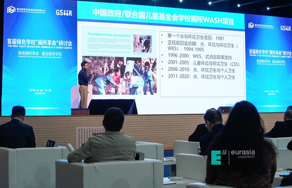 研讨会上,世界厕所组织执行董事、中国区总裁蔡汉明,联合国儿童基金会驻中国代表处水与环境卫生项目专家杨振波,江苏省昆山市培本实验小学校长陈慧琴分别分享了各自在推进中国中小学校园厕所环境改善与人本教育上的努力。