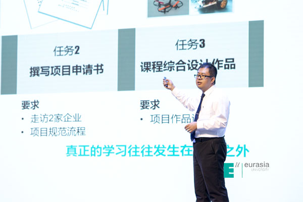 面对新的十年,胡建波董事长再一次作《使命驱动文化引领价值观办学》的专题报告,从“战略的演进与结果、价值观办学与新十年战略、课程体系重构的系统设计、人力资源与新生代员工、未来校园建设”等五个方面,再一次重申了学校未来发展战略核心为“质量”, 国际化是欧亚战略发展的大方向,应用型是欧亚办学和人才培养的基本定位,学校以课程体系为教育教学改革的主要抓手,通过组织变革保障质量战略落地,将国际化和应用型落脚于学生的发展,最终达成“为学生提供高质量的教育服务”的使命,实现成为“中国最受尊重的私立大学”的愿景。欧亚将始终关注教育在“未来十年不变的事情”,即让老师爱上教育,有教育情怀、教育能力和教育定力;让学生按照本来的样子生长,不花太多的学费,接受到好的教育;让企业喜欢我们的毕业生。