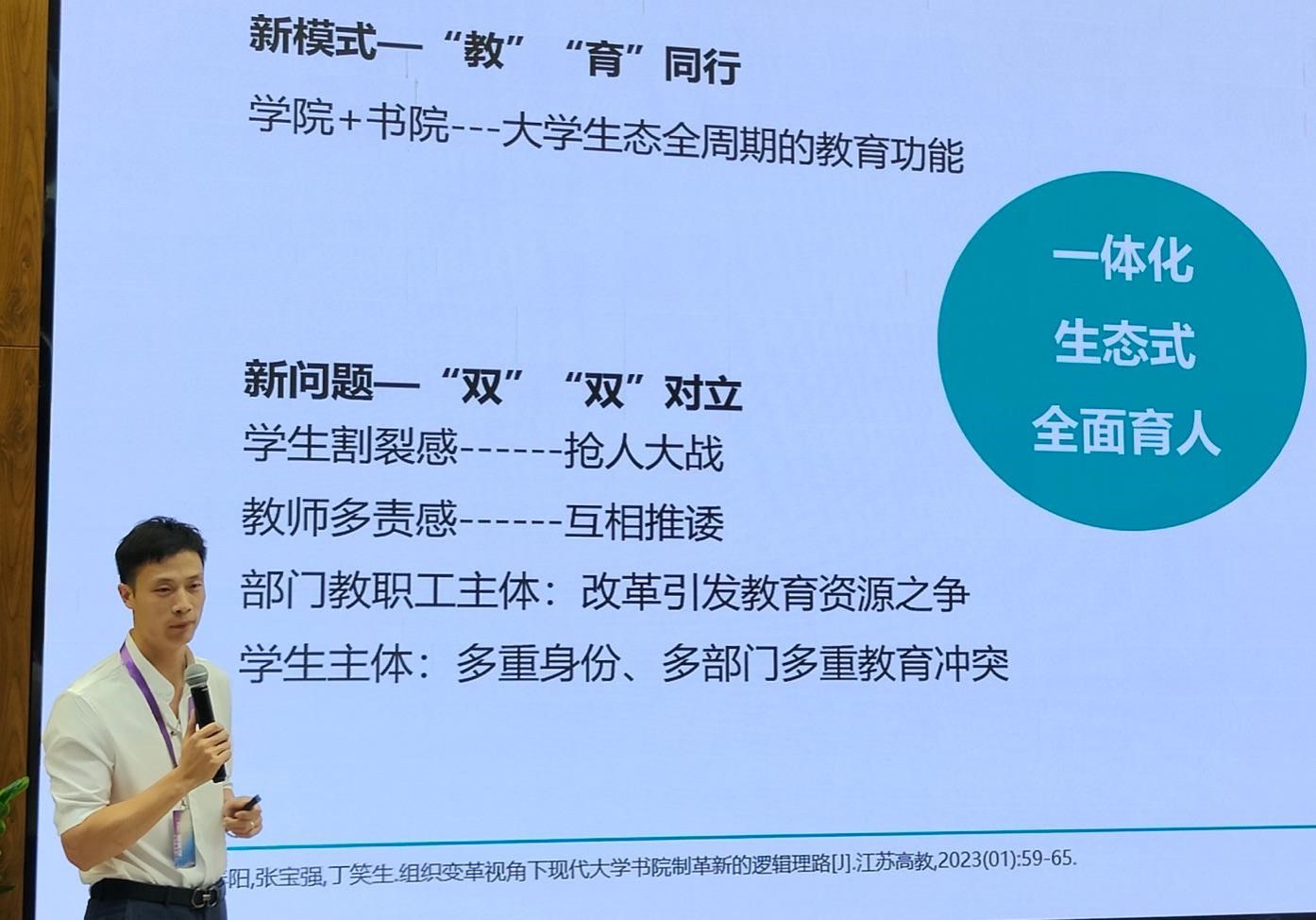 (图四)任少波老师在“书院的管理模式探索和学生组织发展”分论坛作主题发言