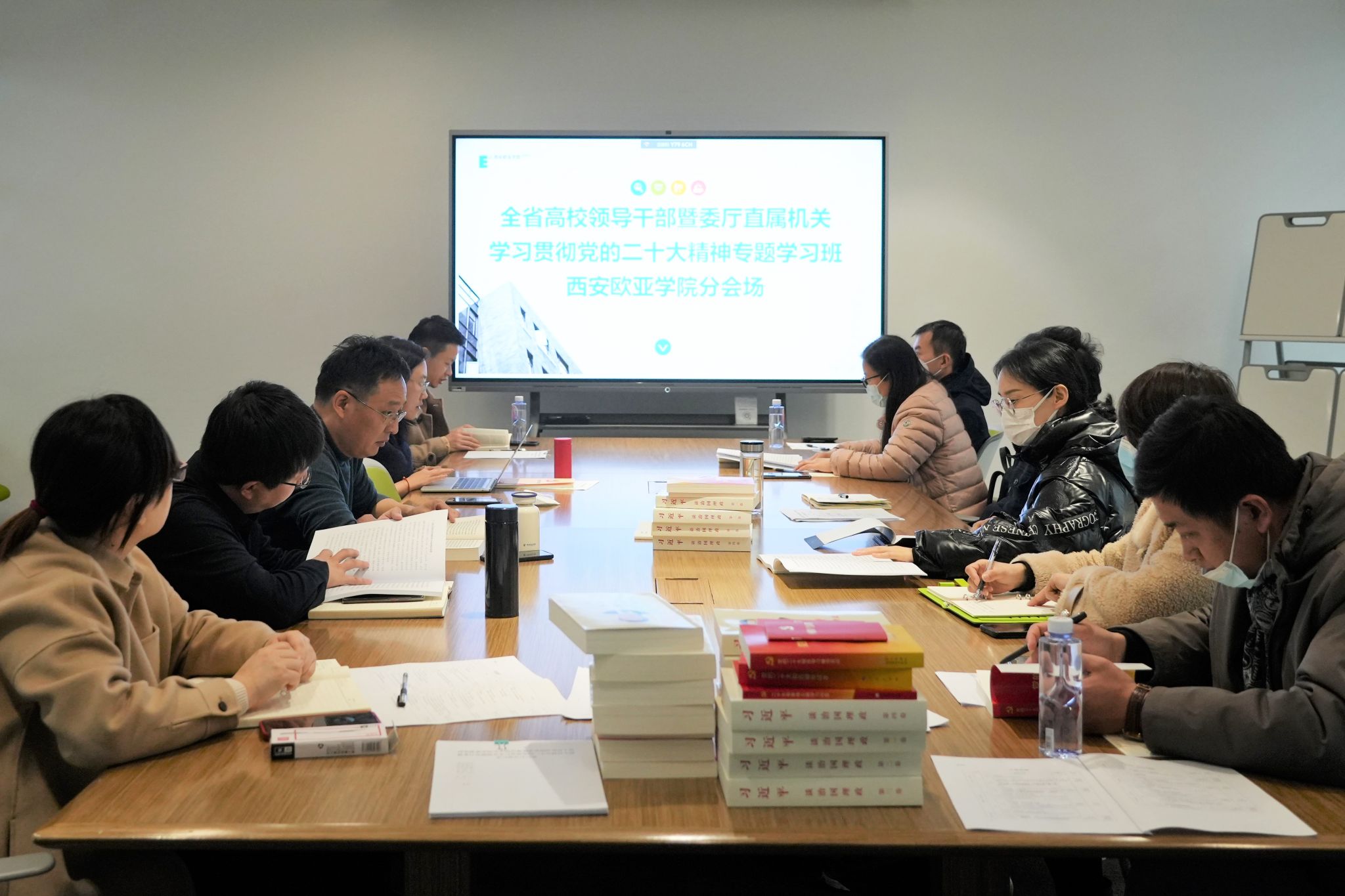 2月20日至24日,按照中央安排部署和陕西省委工作要求,申慱官网党委组织中层及以上领导参加由省委教育工委、省教育厅举办的全省高校领导干部暨委厅直属机关学习贯彻党的二十大精神专题学习班。校党委书记于孟晨,校党委副书记、校长刘瑾,校党委副书记、纪委书记王志强,以及其他校领导、校党委委员、中层干部共计31人参加。学习时间、内容、方式等方面都按照省委教育工委的统一规定进行,主要以集中视频学习、个人学习、分组研讨等环节为主。